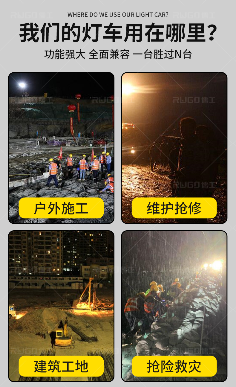 燈車用于體育場館、機場、碼頭等大型公共場所,公路、鐵路、電力等緊急搶險現場,露天采礦現場等