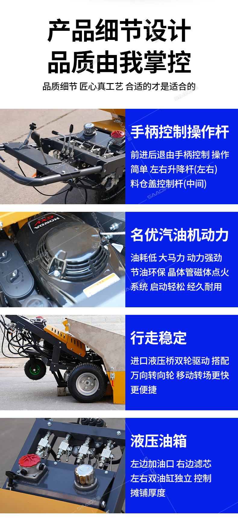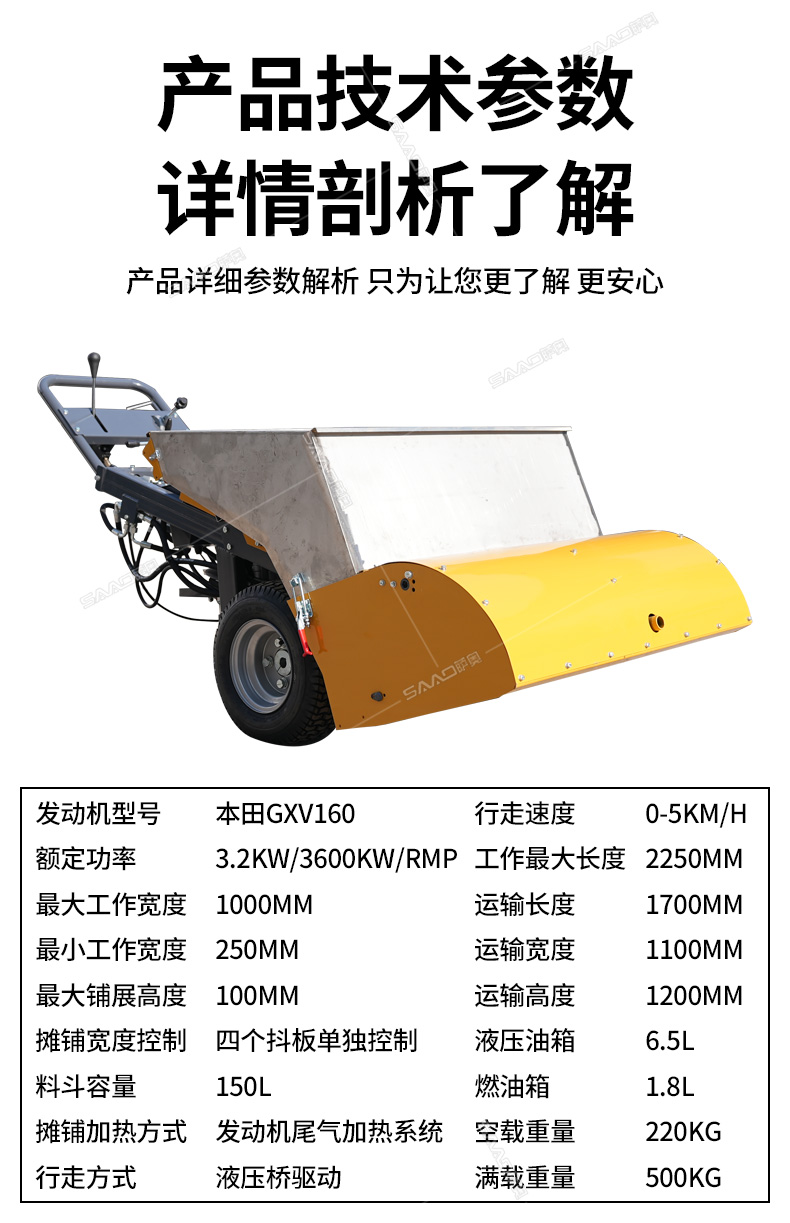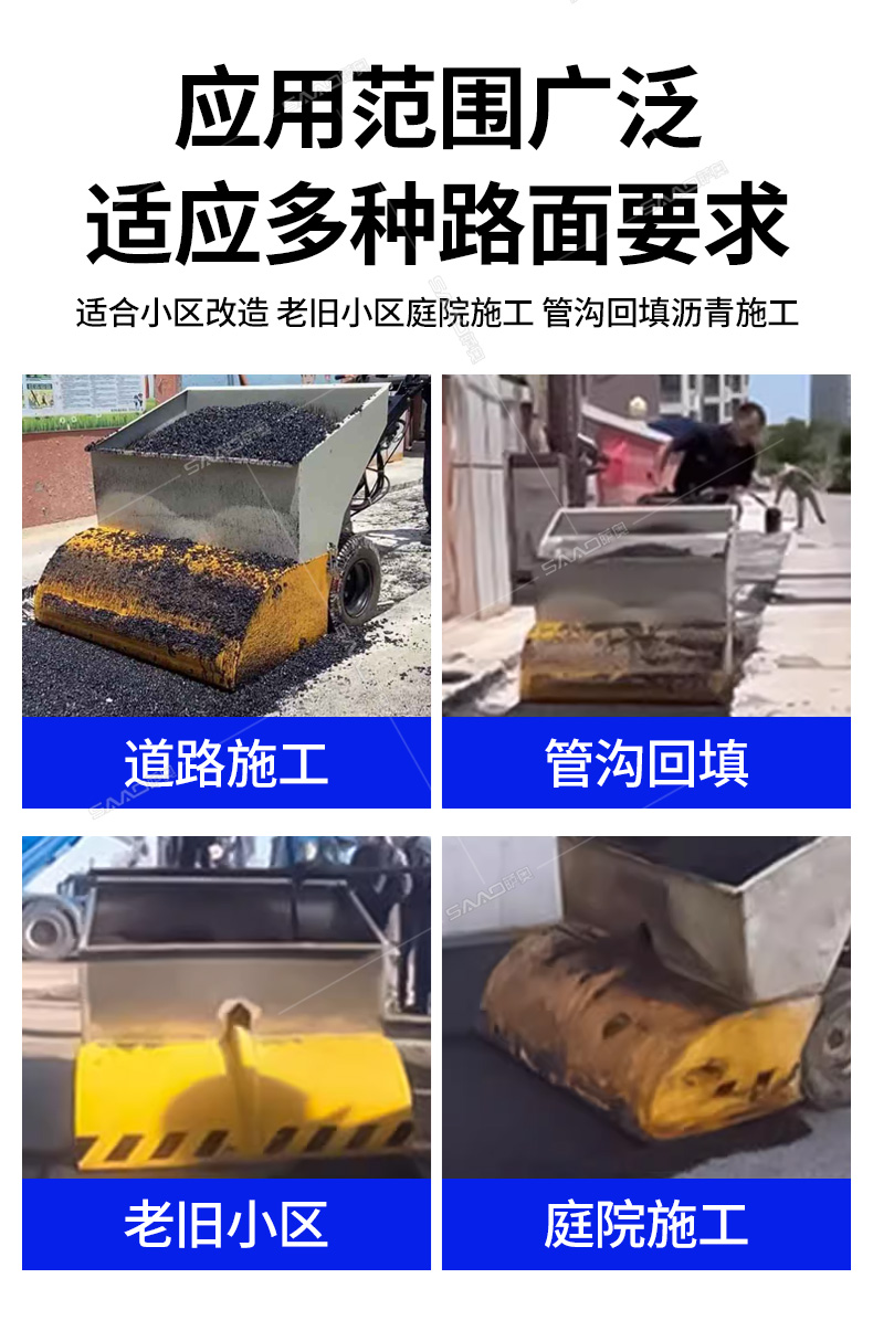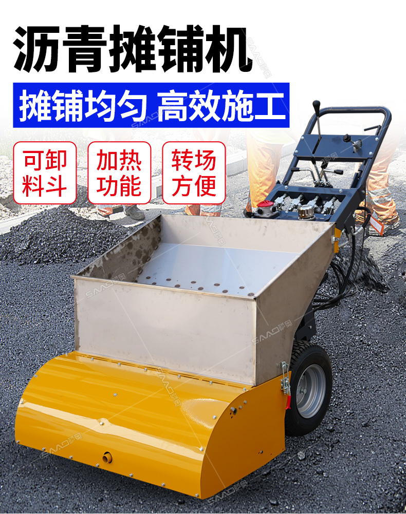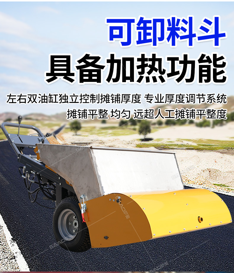 瀝青攤鋪機(jī)攤鋪均勻,高效施工,帶有加熱功能。