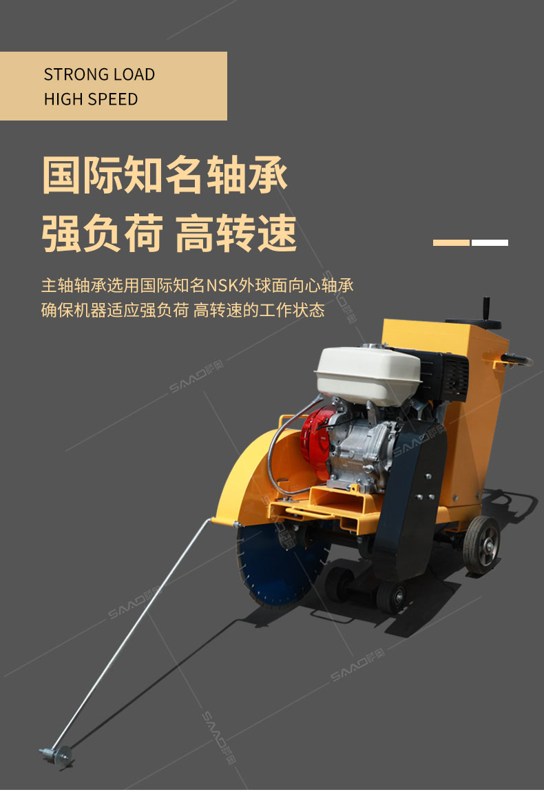 用于公路、市政、建筑、煤氣、通信部門修補公路或開挖溝槽時進行路面切割。相對于電動或柴油動力的路面切割機,操作輕巧省力,運輸方便,工作效率高。
