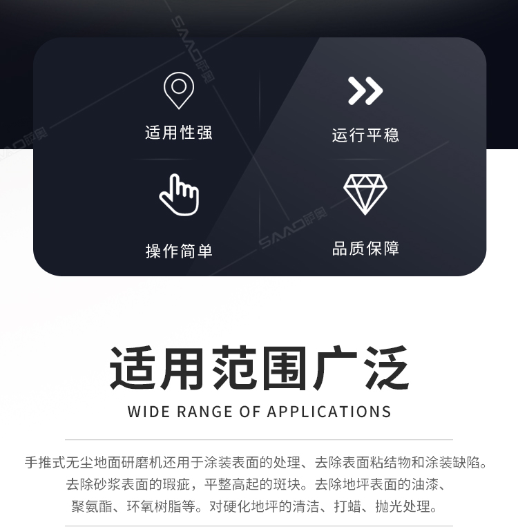 SYM-330B手推式無塵地面研磨機(jī),是集研磨和吸塵為一體的先進(jìn)的路面機(jī)器,邊打磨邊吸塵,為我們提供良好的無塵打磨環(huán)境。特別是在地面混凝土強(qiáng)度低的情況,如果配上砂紙磨片,也可以打磨環(huán)氧膩?zhàn)訉?同時對環(huán)氧膩?zhàn)訉拥哪p小,提高環(huán)氧地面的平整度。