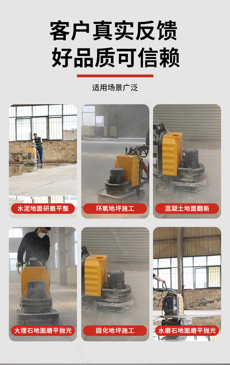 產(chǎn)品用途Product Usage: 其廣泛用于混凝土地面、石材地面的研磨、拋光,終達(dá)到舊地面翻新、新地面無塵的效果。 如:地坪研磨、水泥糙地打磨、舊環(huán)氧地坪翻新、密封固化地坪拋光。