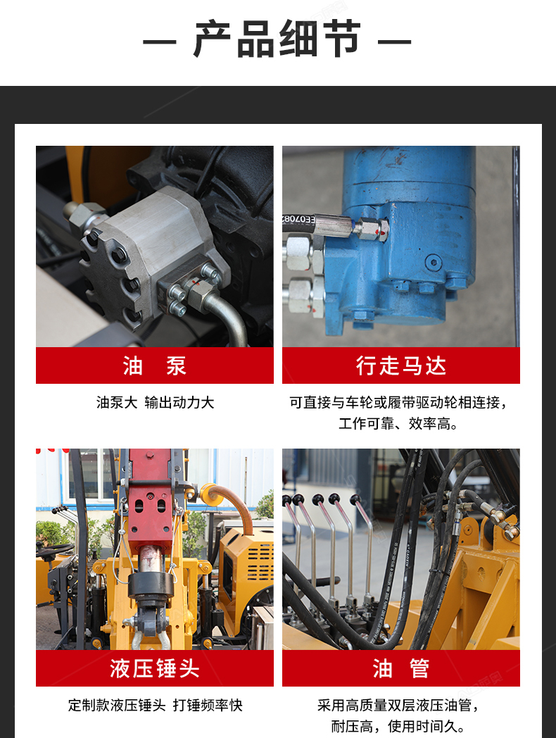 2、液壓系統(tǒng):先進(jìn)的液壓系統(tǒng),高品質(zhì)的液壓元件,嚴(yán)格的裝配工藝,保證液壓系統(tǒng)的高效率和耐久性。