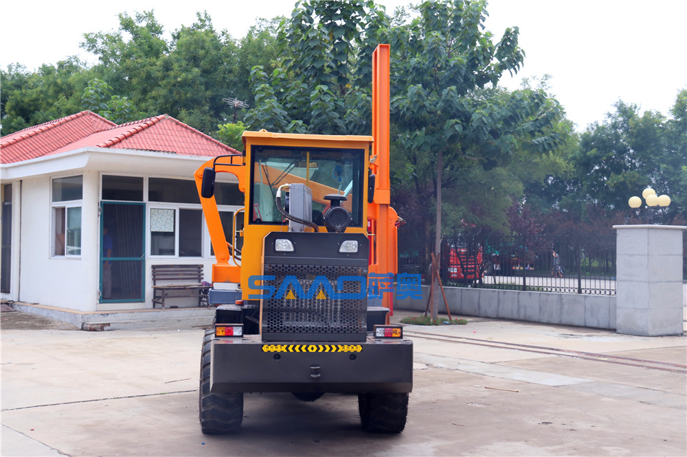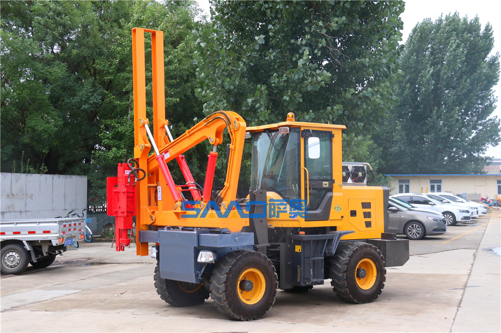 裝載機式護(hù)欄打樁機是薩奧機械根據(jù)市場需求和自身技術(shù)成熟的情況下面向客戶需求而研發(fā)的一款產(chǎn)品,是集裝載、打樁、鉆孔等功能為一體的新型產(chǎn)品。采用全新設(shè)計理念、精心研制整體功能,結(jié)構(gòu)模塊化兼顧的設(shè)計思想,全封閉各木式安裝結(jié)構(gòu),更利于產(chǎn)品快速安裝和轉(zhuǎn)場,可廣泛運用于公路、高速等路面護(hù)欄的樁孔鉆進(jìn)工作。