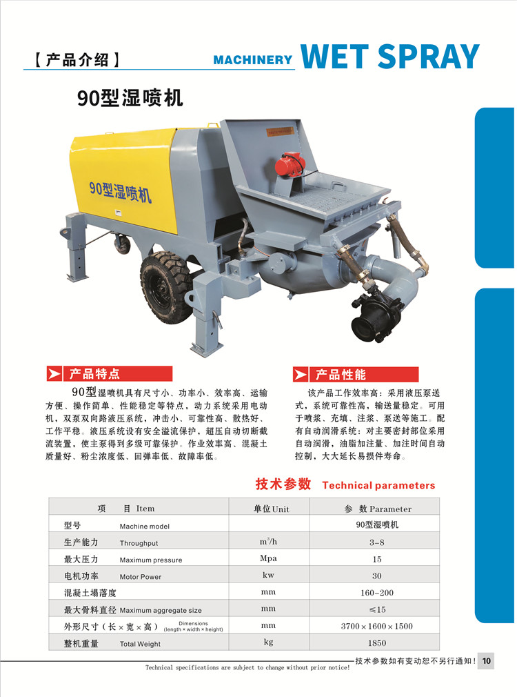 主要用于混凝土的噴濕,能使混合料拌合均勻,水灰比準(zhǔn)確控制,有利于水泥的水化,因而粉塵小,回彈小、混凝土均質(zhì)性好,強(qiáng)度高。結(jié)構(gòu)合理、性能穩(wěn)定、操作維護(hù)方便、使用壽命長(zhǎng),廣泛應(yīng)用于鐵(公)路隧道,地鐵,高層建筑,護(hù)坡(基坑)加固,水電工程,地下工程及礦山井巷噴射混凝土施工作業(yè)。