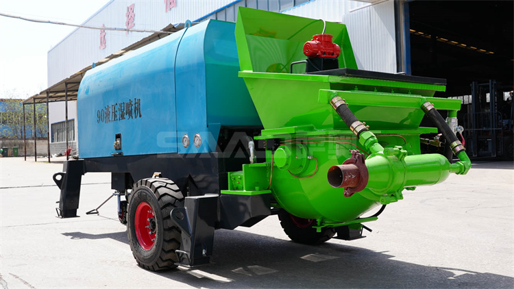 液壓濕噴機(jī)是利用液壓泵產(chǎn)生的推力,使用兩個(gè)油缸往復(fù)交替運(yùn)動(dòng),將稠密流物料由輸送管道送至混流管處,經(jīng)壓縮空氣形成稀薄流 通過(guò)管道送至噴頭處,在噴頭加入相應(yīng)比例的速凝劑,直接噴漿到受噴面上的一種機(jī)、電、液、三合一的機(jī)械設(shè)備,被普遍應(yīng)用于公路、鐵路、隧道、建筑、水電站等工程建設(shè)中。