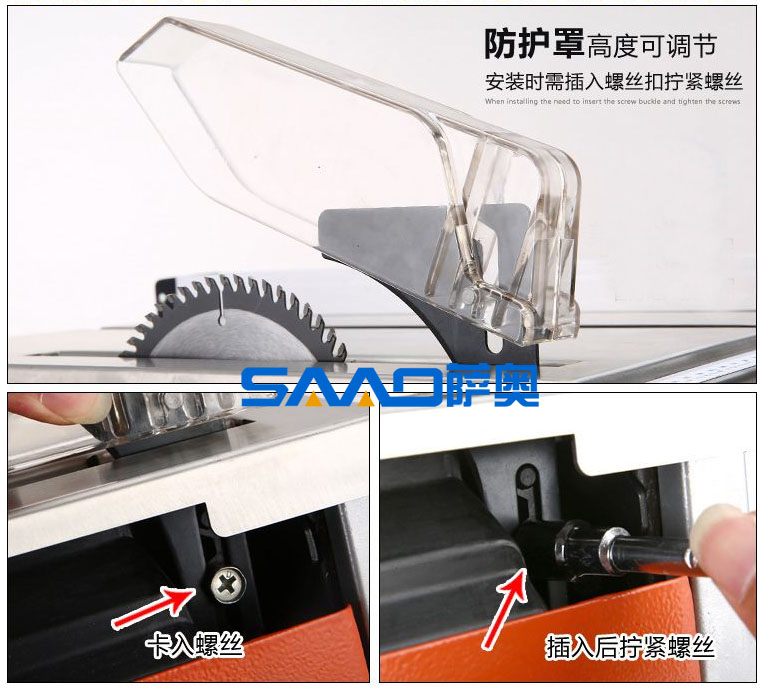 1、 鋸片采用齒輪升降調(diào)節(jié)功能,可切割不同厚度木制品和割槽能力,而且更有效的提高了吸塵效果;