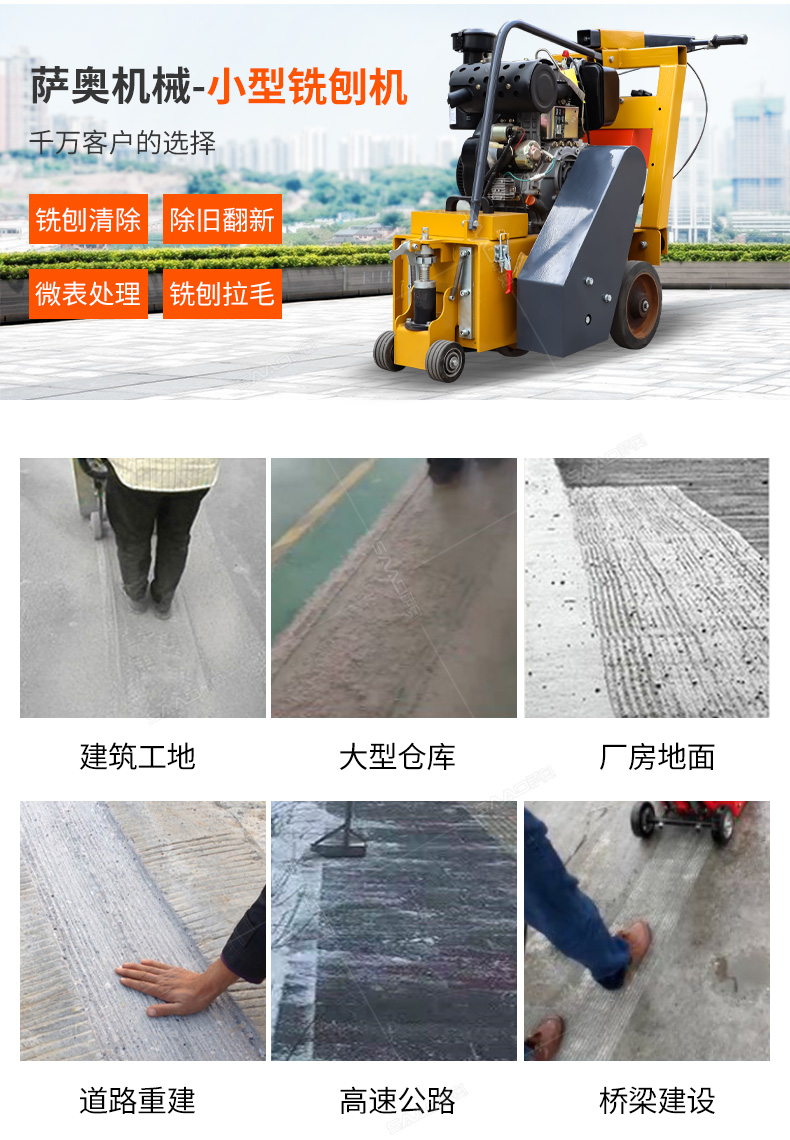 【產(chǎn)品介紹】 用于橋面鋪設(shè)瀝青或車間舊的混凝土地面重新攤鋪混凝土之前,清除水泥浮漿以及鏟平拉毛,也用于清除建筑施工中遺留的堅(jiān)硬灰渣。 【產(chǎn)品用途】 小型銑刨機(jī)主要是用