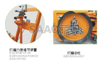 5、打 磨 頭:三個(gè)獨(dú)立旋轉(zhuǎn)的磨頭組成,磨頭上均鑲嵌進(jìn)口耐磨硬質(zhì)合金,寬度180mm
