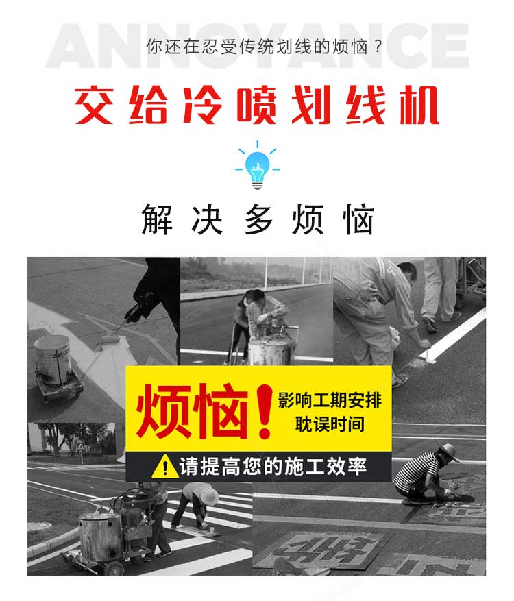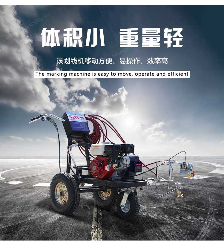 產(chǎn)品介紹: 冷噴劃線機是常溫標線施工的專用設備,噴出的線型清晰、流暢、飽滿、均勻,主要用于公路、停車場、機場、加油站、公司廠區(qū)等涂畫直線、虛線、曲線、斑馬線、文字、