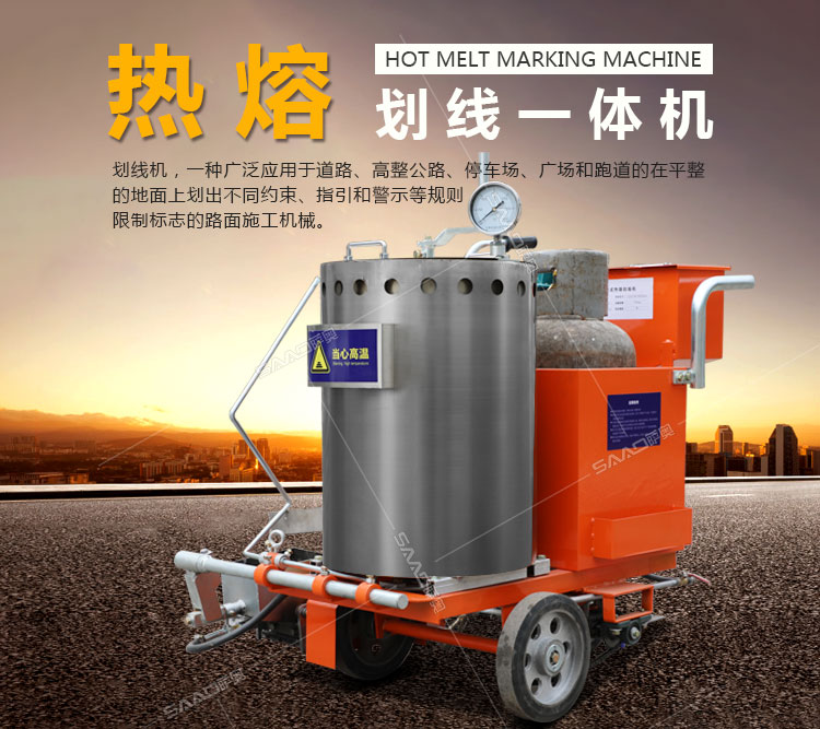 手推式熱熔劃線一體機,一種廣泛應(yīng)用于道路、高整公路、停車場、廣場和跑道的在平整的地面上劃出不同約束、指引和警示等規(guī)則限制標志的路面施工機械。劃線機以其快速、高效、