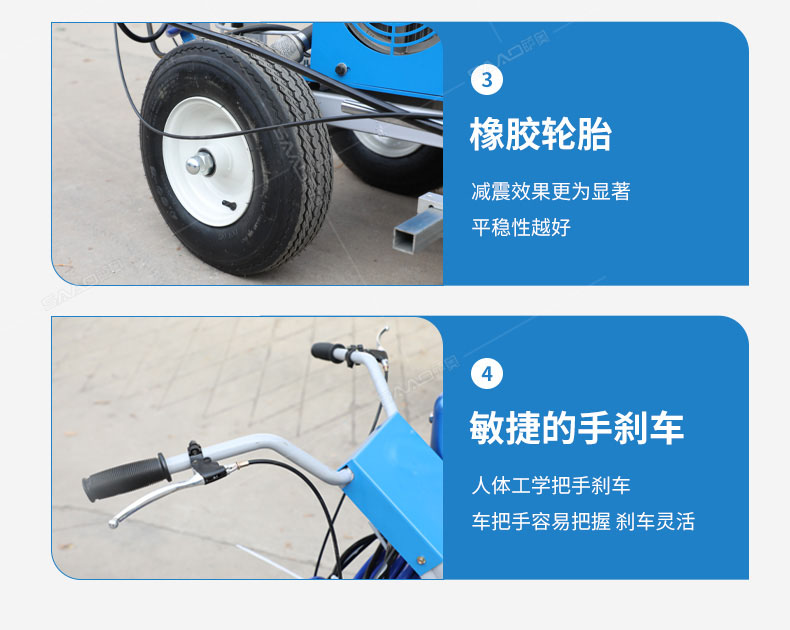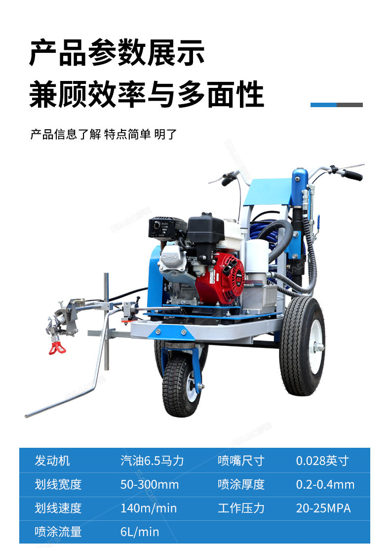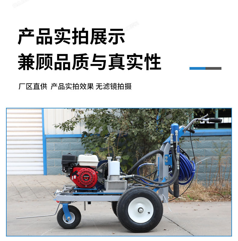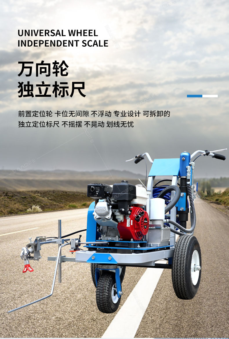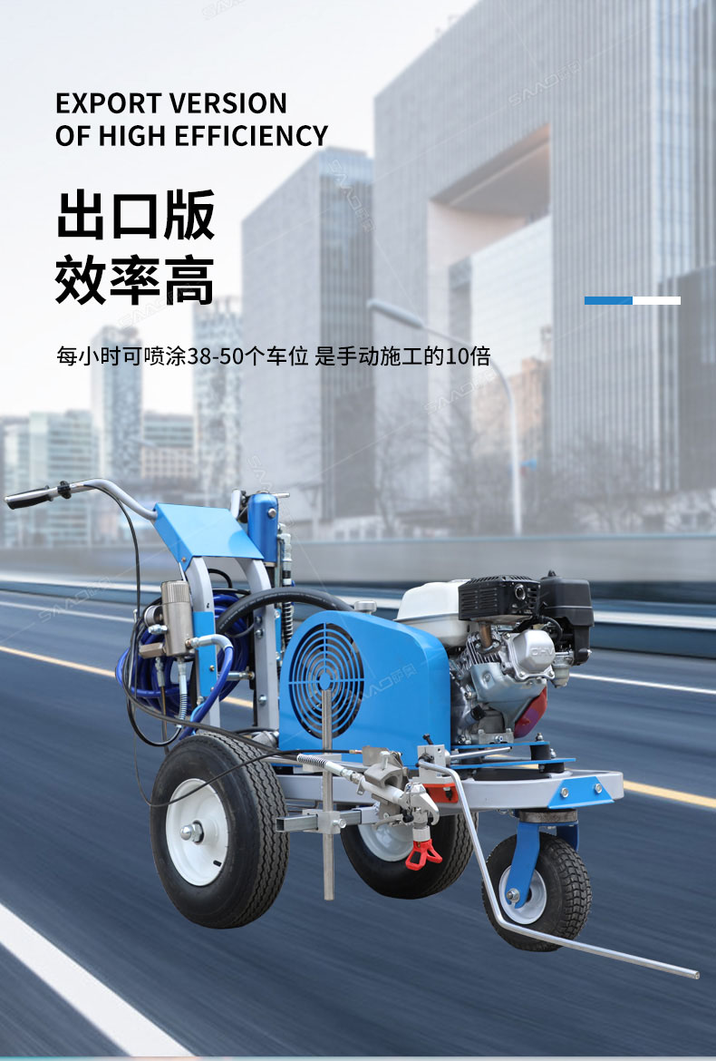 道路劃線機有冷噴式和熱熔式兩大類,冷噴式操作方便,施工快捷,可連續(xù)快速施工,越來越受到用戶青睞。熱熔式要帶上熱熔高溫爐等諸多輔助設(shè)施,施工時要間歇地從熱熔高溫爐取料,施工速度很慢,操作便捷性不夠且效率低,但一次成膜較厚。目前,比較常用的是冷噴手推式劃線機,它可運用于一般公路中小工程,運用于廠區(qū)或地下室小工程劃線施工。