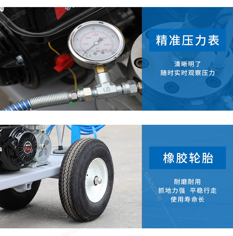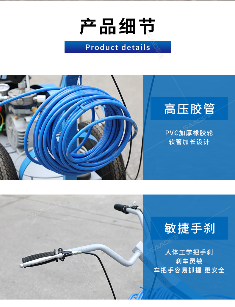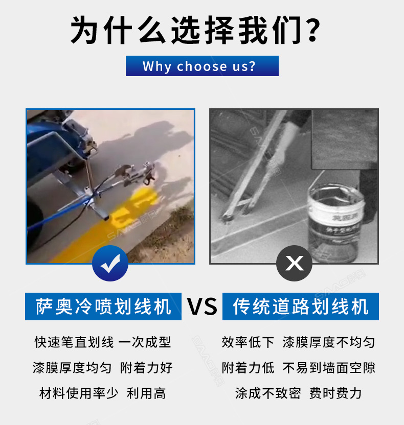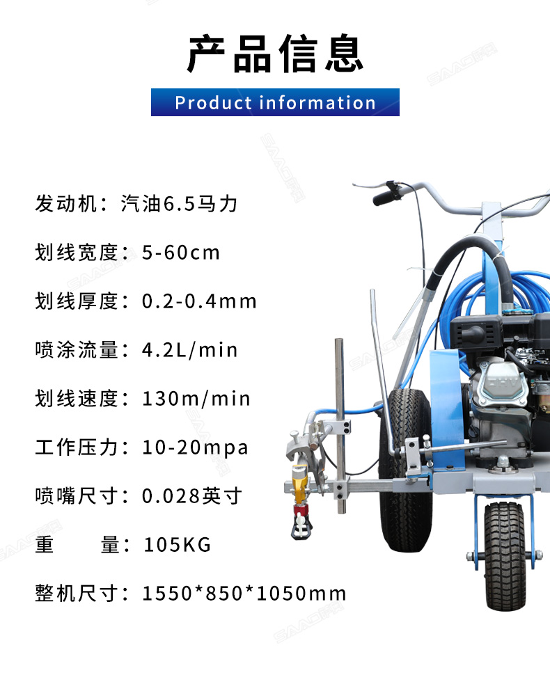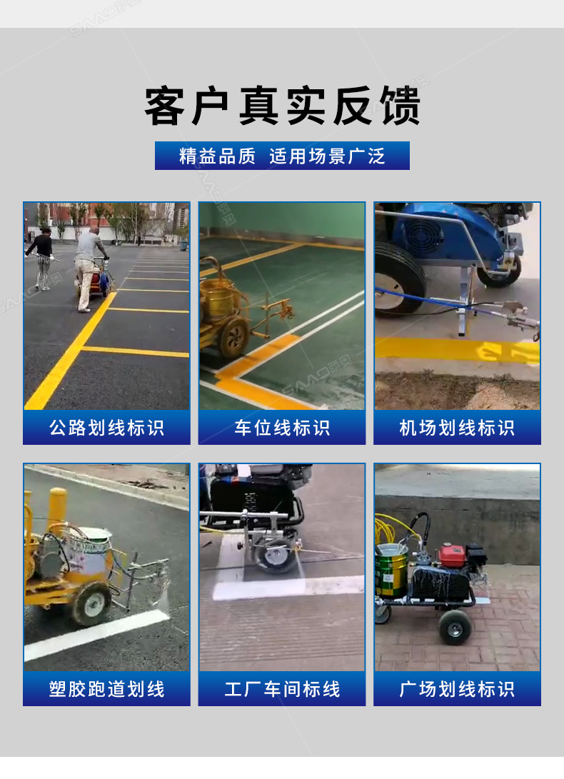主要用于公路、市區(qū)、停車場、機(jī)場等涂劃直線、虛線、曲線、文字、箭頭等。具有劃線效果好、速度快、效率高、適用范圍廣、使用方便等優(yōu)點(diǎn)。 【優(yōu)勢特點(diǎn)】 1.高壓噴嘴劃線,準(zhǔn)確