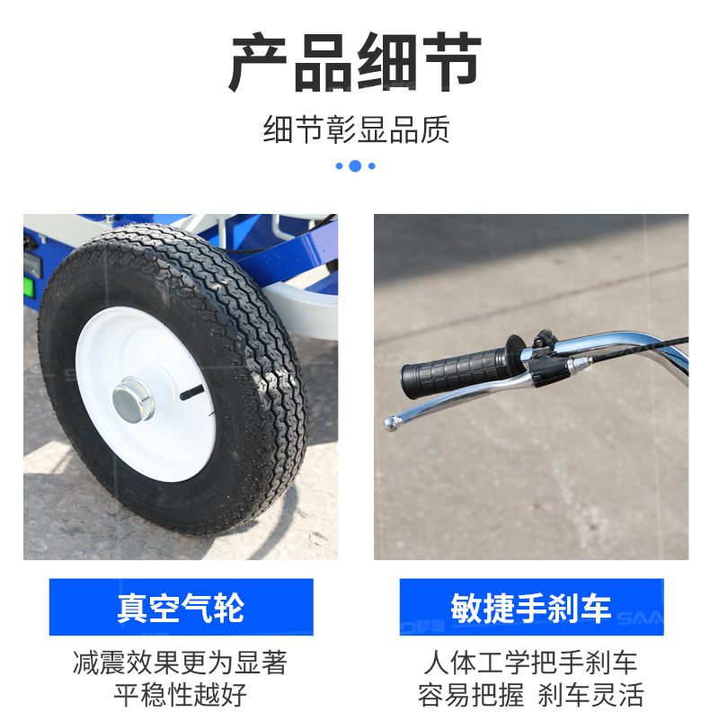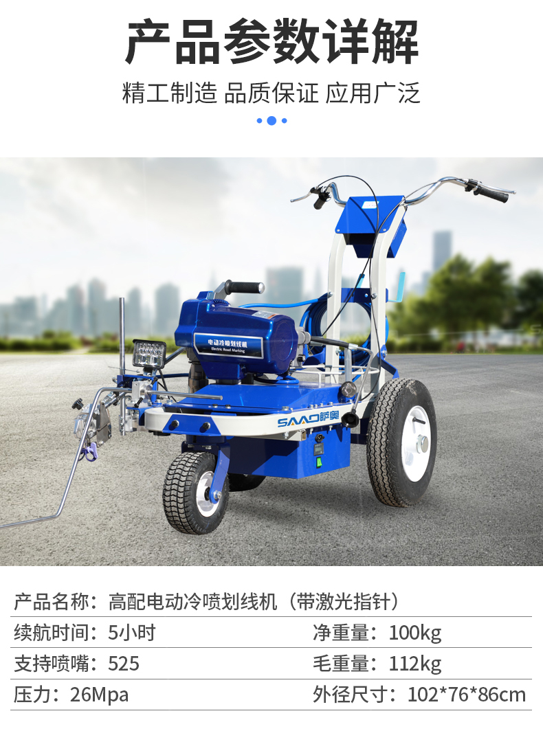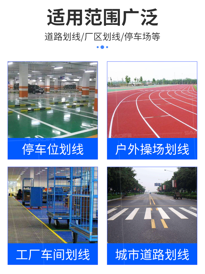 【產(chǎn)品介紹】 小區(qū)物業(yè)、地下車庫、學(xué)校、加油站、駕校場地等噴涂工作量不是特別大的客戶 【產(chǎn)品優(yōu)勢】 持久續(xù)航,運(yùn)行穩(wěn)定,劃線筆直,無噪音。 真空氣輪:減震效果更為顯著平