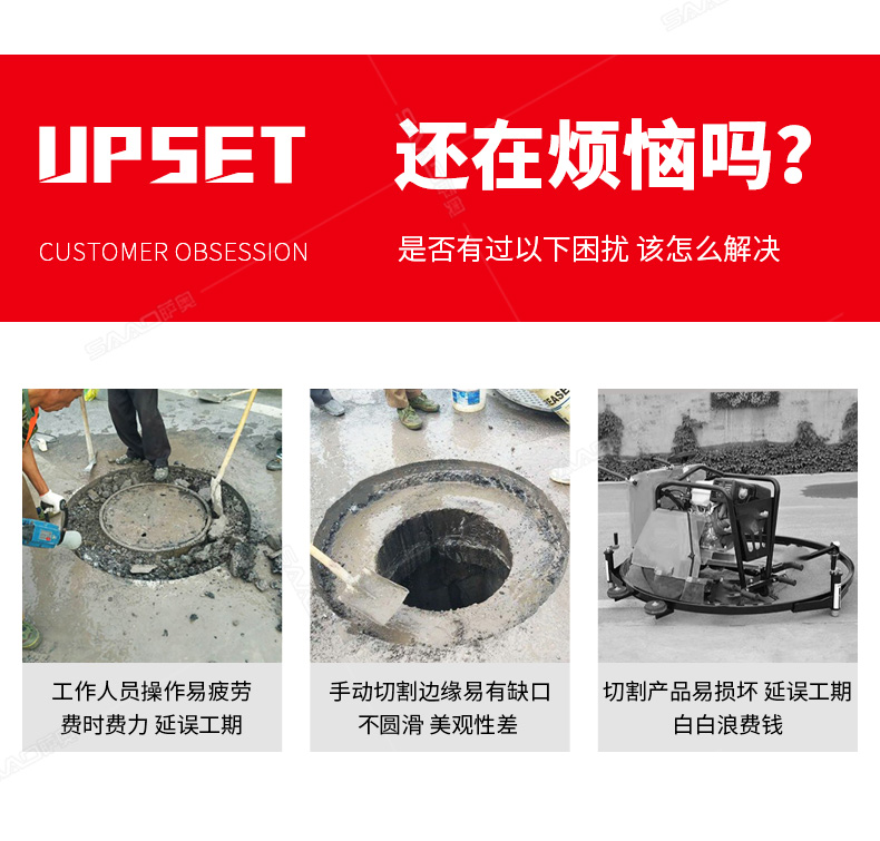 【產品介紹】 全自動井蓋切割機,專門用于對城市道路中機動車道等井蓋周圍的水泥、混凝土、瀝青、特殊路面進行圓形切割。為清除井蓋周圍的破損路面提供分割區(qū)域,修復后的地面