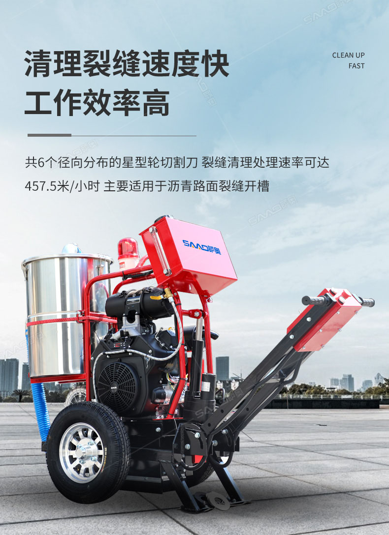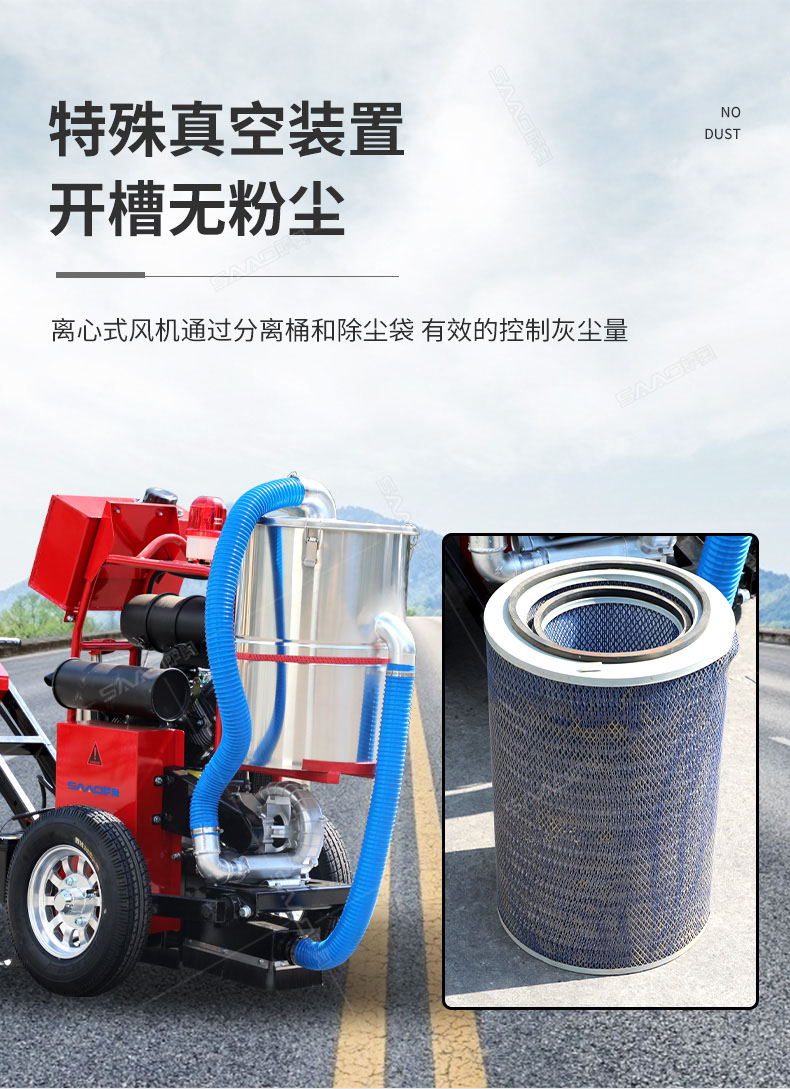 自吸塵式路面開槽機主要用于瀝青路面修補裂縫開槽的機械,其集吸塵、開槽為一體,環(huán)保性好,工作效果高,是路面開槽施工不錯的選擇。