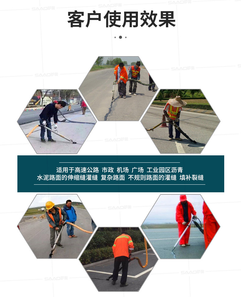 應(yīng)用廣泛適用多種領(lǐng)域適用于高速公路、市政、機場、廣場、工業(yè)園區(qū)瀝青、水泥路面的伸縮縫灌縫、復(fù)雜路面、不規(guī)則路面的灌縫,填補裂縫。