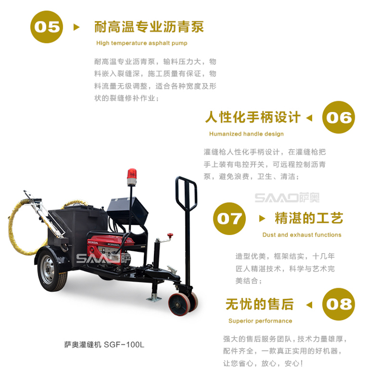 我廠專業(yè)生產(chǎn)瀝青灌縫機(jī)12年,質(zhì)量保證!全國發(fā)貨!型號有60升,90升,130升,200升,350升,500升,650升瀝青灌縫機(jī),各種型號瀝青修補(bǔ)車,如需了解請致電24小時免費電話:400-860-5689