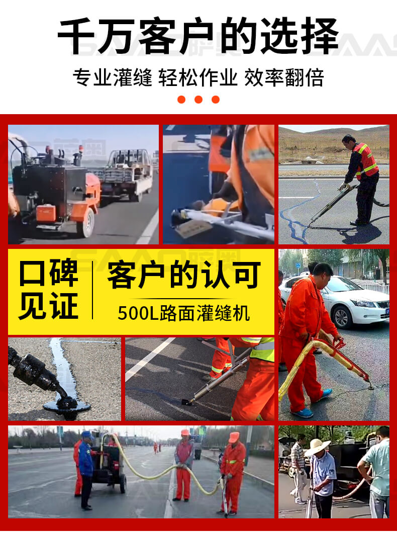 SGF-500路面灌縫機(jī)適用于瀝青路面或水泥路面裂縫密封灌縫,是中、大型路面裂縫養(yǎng)護(hù)工程量施工首選設(shè)備。