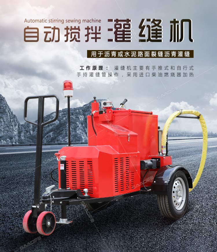 120升自動攪拌款灌縫機(jī)用于瀝青或水泥路面裂縫瀝青灌縫,注意:在灌縫前要對裂縫內(nèi)的塵土進(jìn)行清縫處理。