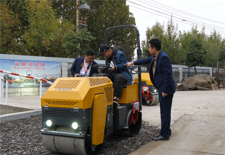 對(duì)于采訪團(tuán)而言,只看還真不過癮,當(dāng)大家參觀測(cè)試區(qū)時(shí),看到測(cè)試員正在測(cè)試剛組裝好的座駕式壓路機(jī),這時(shí)組織媒體采訪團(tuán)的阿里負(fù)責(zé)人找到韓總說:“有些媒體朋友也想上機(jī)體驗(yàn)一下?!眽郝窓C(jī)不同其它設(shè)備,操作非常簡(jiǎn)單,想試咱就試。韓總協(xié)調(diào)之后,采訪團(tuán)紛紛上機(jī)體驗(yàn),從開壓路機(jī)的操作情形來看,誰也想不到這是一個(gè)平時(shí)拿筆桿子工作的人。