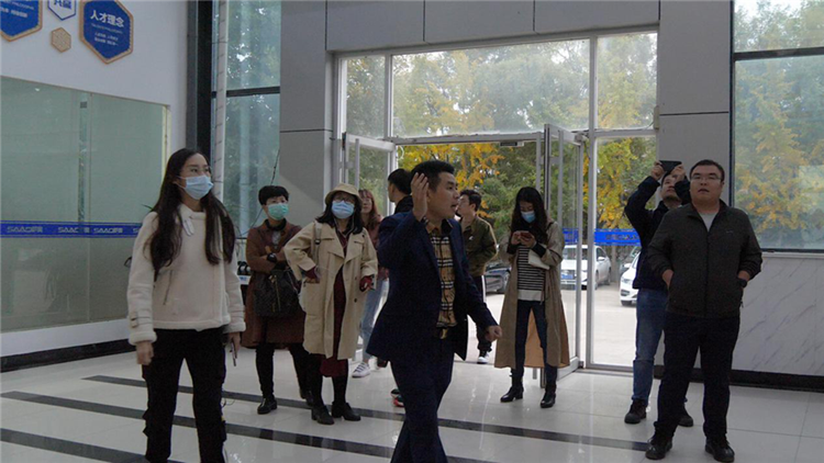 圖/采訪團(tuán)在薩奧機(jī)械負(fù)責(zé)人韓廣非陪同下進(jìn)行參觀采訪