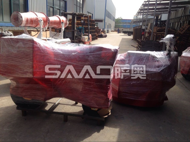 此次發(fā)貨的高壓霧炮,通過炮狀水箱向外噴射出細密的水霧,可將空氣中細小的顆粒粉塵有效吸附,進而達到凈化空氣、降塵除霾的作用。環(huán)保部門對我公司研發(fā)生產霧炮的測試,“霧炮”可以將空氣中的PM10濃度降低15%左右。