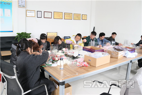 沒錯(cuò),你猜對了,本次圣誕節(jié)的圣誕老人就是濟(jì)寧薩奧機(jī)械的全體員工。本次的圣誕節(jié)的各種布置以及禮物都是全手工制作,包括禮物的制作、圣誕樹的布置等。當(dāng)同事們將自己制作成功的禮物互相贈(zèng)送給對方的哪一刻,是一種用語言無法形容的感動(dòng);再看看自己精心布置成功的圣誕樹,也許它并不是很漂亮的,但它確實(shí)是具特色的;也許它并不是很華麗的,但它在我們每個(gè)人心中確實(shí)非常寶貴的。