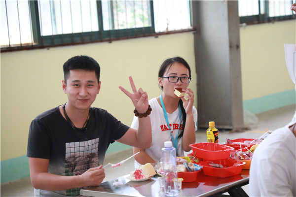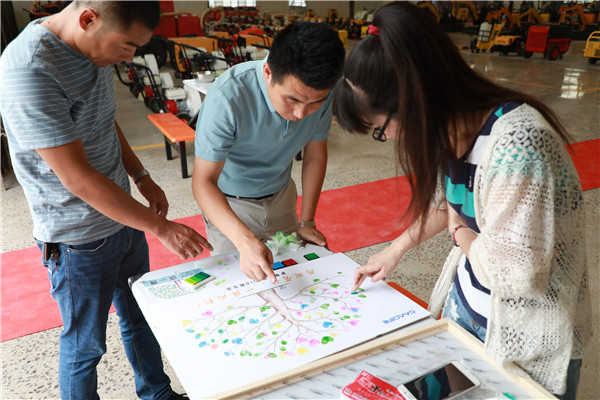 薩奧就像是一顆大樹,因?yàn)榇蠹覉F(tuán)結(jié)一致,共同努力才使得這棵樹長得更加高大、筆挺。慶典開始后,大家排隊(duì)在薩奧大樹的樹干上印上一個(gè)個(gè)手指印,組成了一個(gè)個(gè)愛心,為本來光禿禿的樹干帶來了絢麗的色彩。
