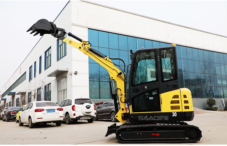 1、微型挖掘機(jī)行走時(shí),應(yīng)盡量收起工作裝置并靠近機(jī)體中間,以保持穩(wěn)定性;把終傳動(dòng)放在后面以保護(hù)終傳動(dòng)。要盡可能地避免駛過樹樁和石塊等障礙物,防止履帶扭曲;若需要駛過障礙物時(shí),應(yīng)確保履帶中間在障礙物上。過土墩時(shí),就始終用工作裝置支撐住底盤,以防止車體劇烈晃動(dòng)甚至翻傾。