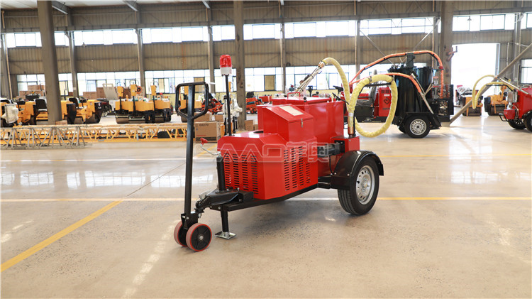 作為路面常見問題的裂縫,我們對(duì)此采取的態(tài)度是:及時(shí)封閉,禁止蔓延。瀝青灌縫機(jī)是對(duì)裂縫進(jìn)行熱修補(bǔ)的設(shè)備,將瀝青料加熱灌入裂縫中,使灌縫料與裂縫貼合,封閉裂縫,禁止其蔓延。在瀝青灌縫機(jī)施工過程中需要配合的是,對(duì)裂縫進(jìn)行擴(kuò)縫,并清理干凈,讓灌縫料與裂縫面更好的貼合。