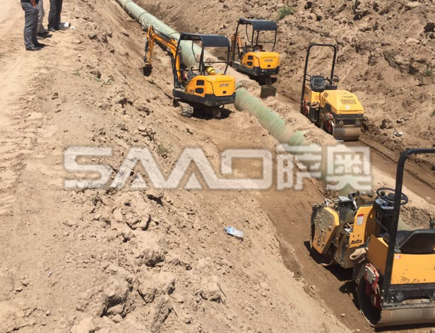 薩奧機械2臺座駕壓路機在新疆施工現(xiàn)場