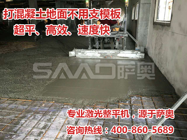 使用混凝土激光整平機(jī),一天可完成3000~5000㎡,原始人工提前支模板,施工成效低,拉長了工期。