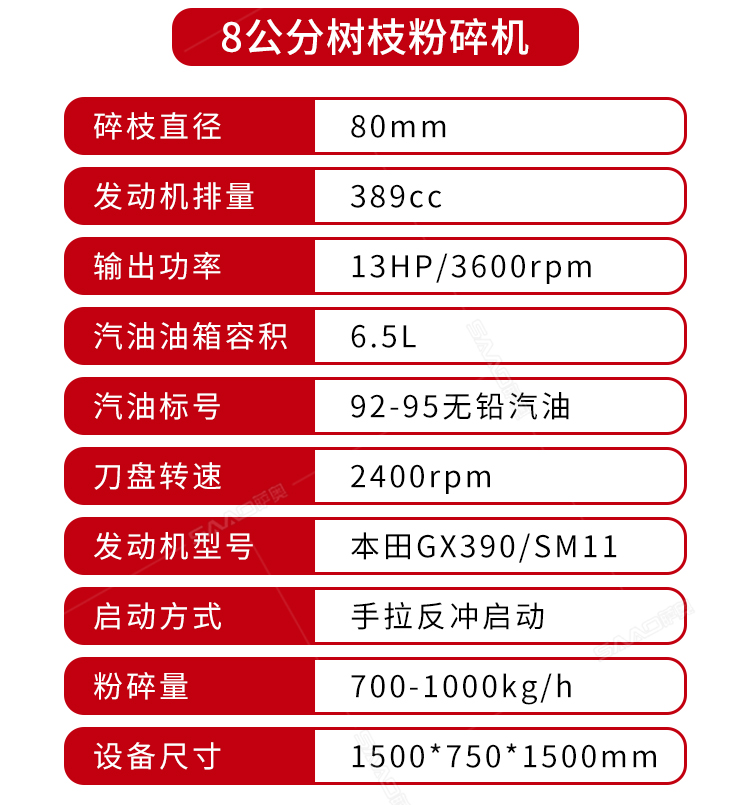 動力強勁,高效粉碎,可供公園,物業(yè)和綠化公司等專業(yè)組織使用,可輕松將直徑長達8.5cm的樹枝卷入并粉碎,結(jié)構(gòu)緊湊,安全耐用。