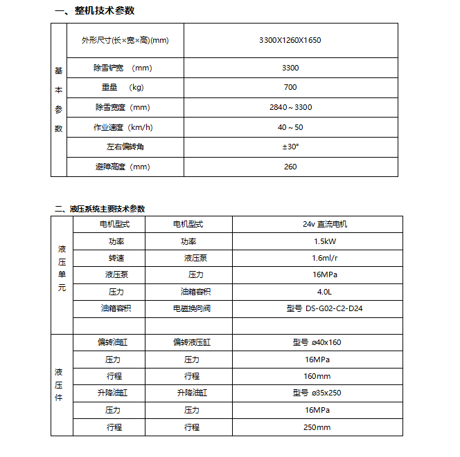 6、依路面橫坡坡度,除雪鏟鏟刀具有自動(dòng)調(diào)節(jié)功能。