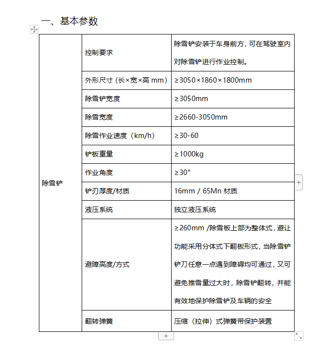 7、依路面橫坡坡度,除雪鏟鏟刀具有自動調(diào)節(jié)功能。
