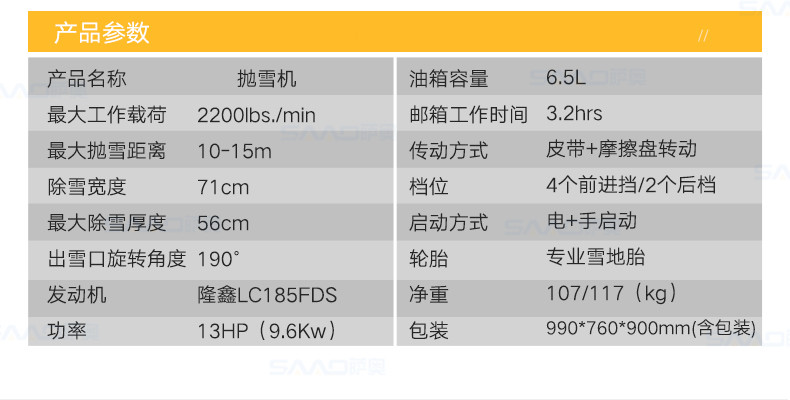 SA-71小型手扶自走清雪機(jī)掃雪機(jī)(黃色)