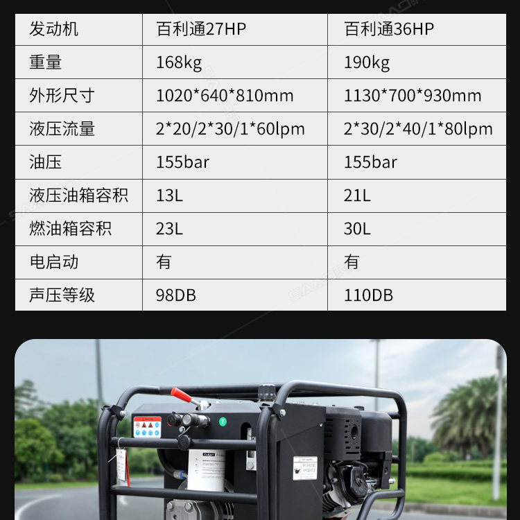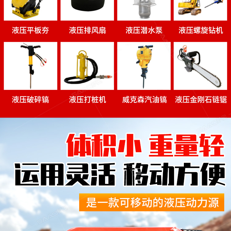 【產(chǎn)品用途】 在公路市政養(yǎng)護(hù)、燃?xì)庾詠硭畵屝?、地震和消防救援作業(yè)中提供方便可靠的動力源。 【產(chǎn)品介紹】 液壓動力站是為各種液壓工具提供液壓動力的泵站,像液壓渣漿泵、液