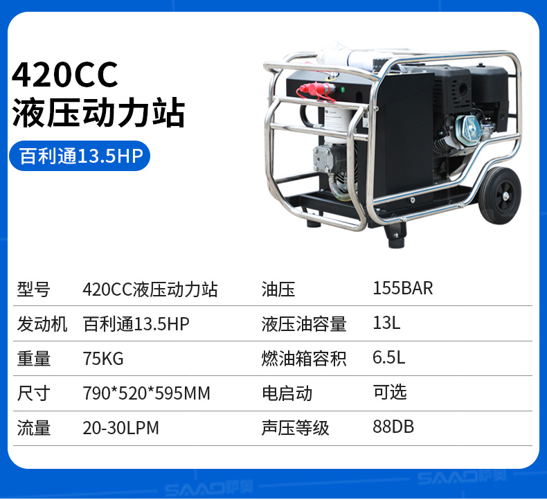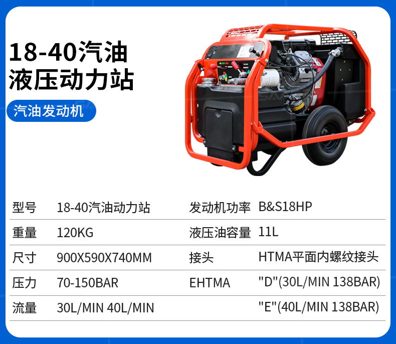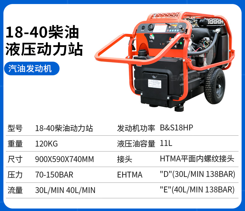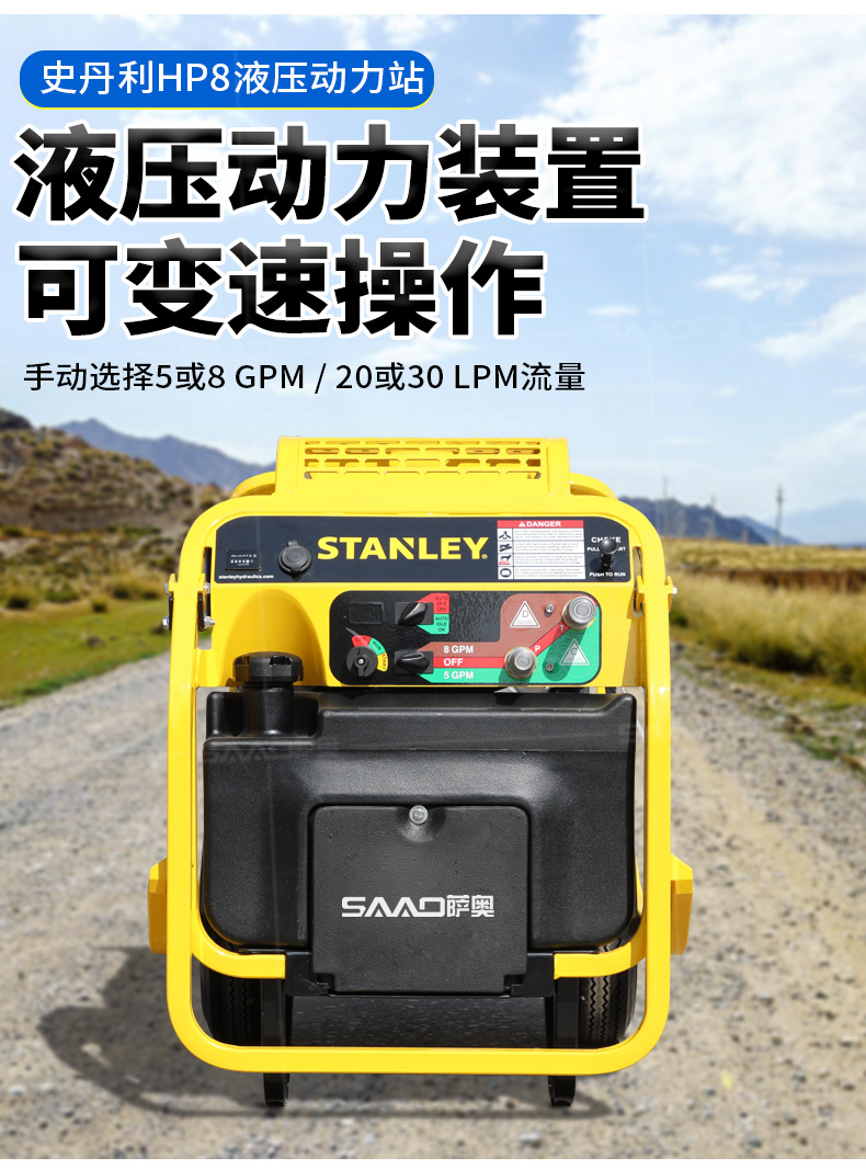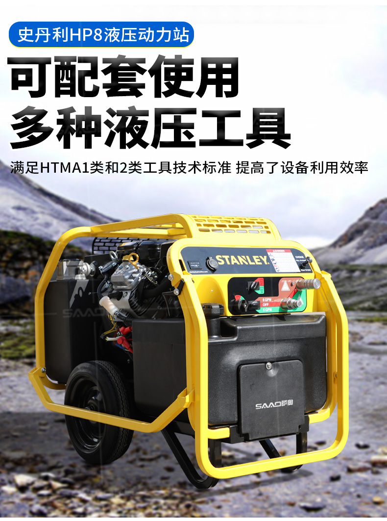 HP8動力站是為液壓設(shè)備提供持續(xù)動力的,它同時滿足1類和2類液壓設(shè)備。它采用百力通18馬力 汽油發(fā)動機,有良好的液壓油散熱系統(tǒng),以滿足液壓設(shè)備可以正常、持久地工作。
