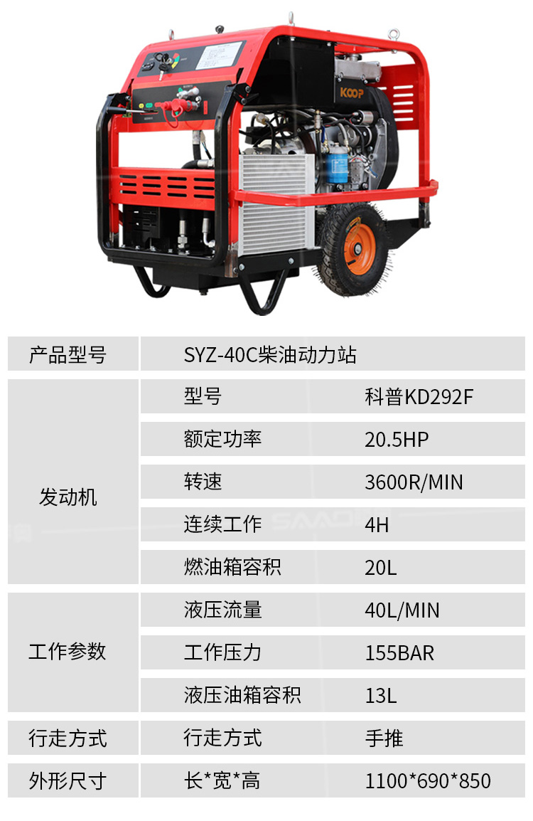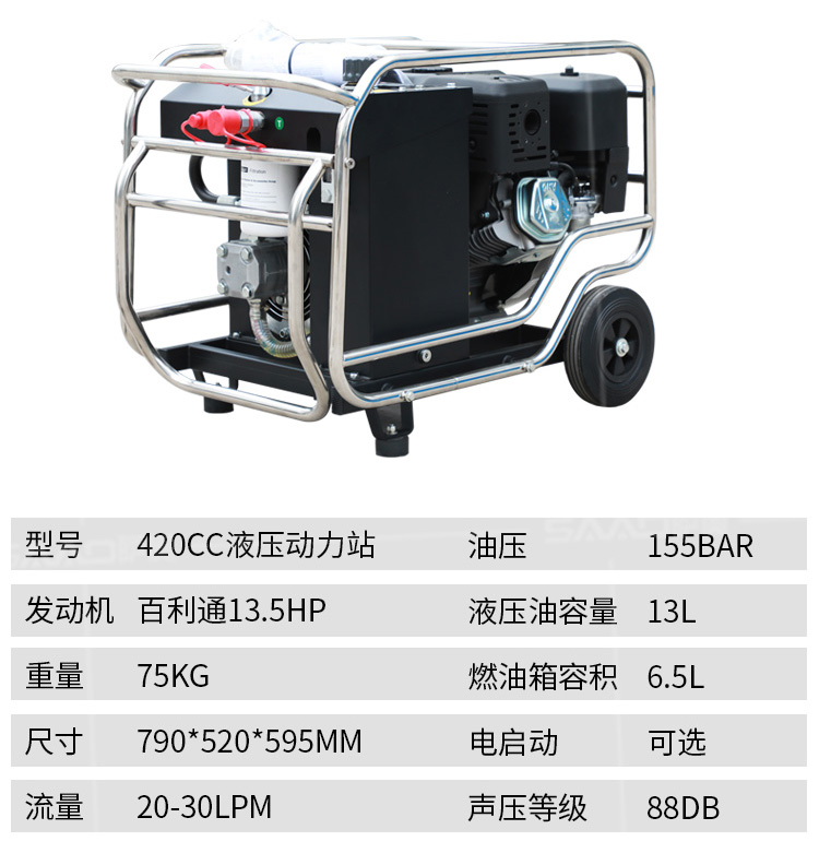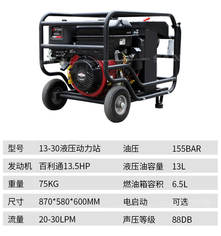 液壓動(dòng)力站采用先進(jìn)的技術(shù),可提供汽油或柴油風(fēng)冷式內(nèi)燃發(fā)動(dòng)機(jī),燃燒效率高,重量輕,堅(jiān)固耐用,使用壽命長(zhǎng),且不用擔(dān)心發(fā)動(dòng)機(jī)過(guò)載。