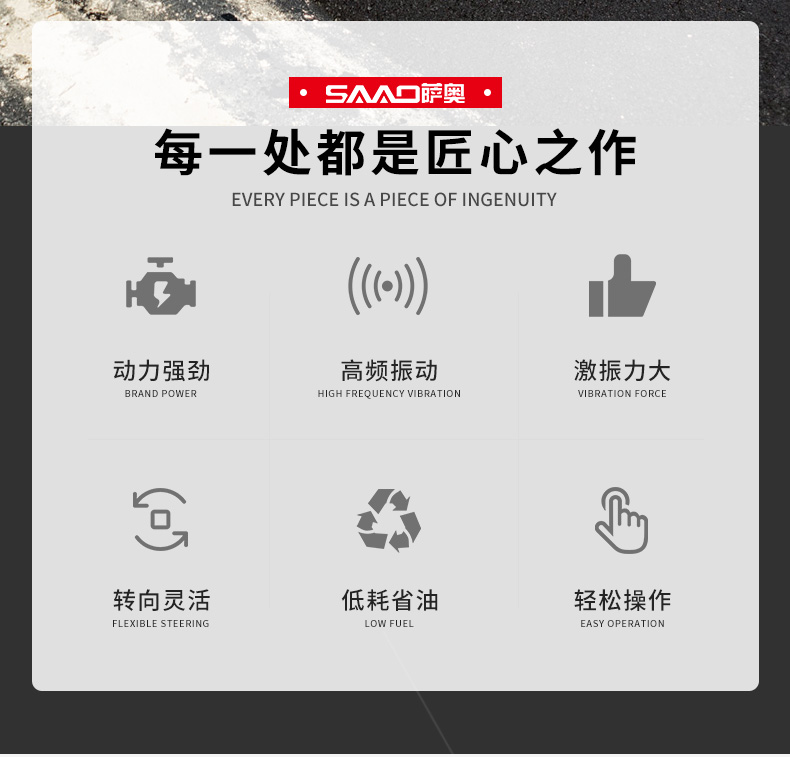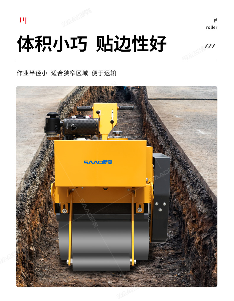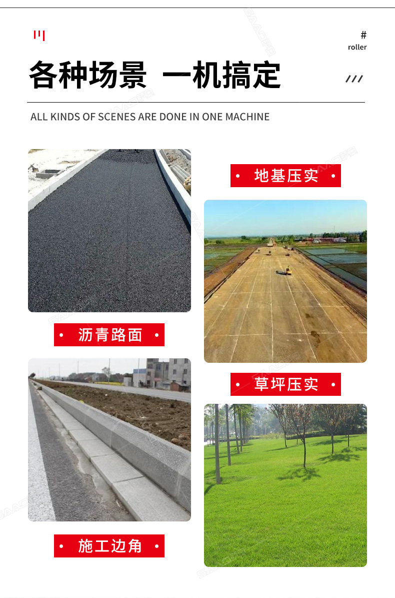 主要用于溝渠基礎(chǔ),道路,體育場地的壓實整平,也可用于壓實瀝青表面的作業(yè)。